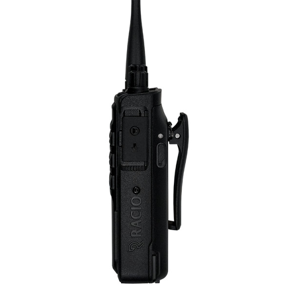 Профессиональная портативная радиостанция Racio PR1220 с литий-ионным аккумулятором емкостью 3300 мА∙ч, мощностью 10 Вт и возможностью заряжать аккумулятор напрямую от кабеля с разъемом Type-C. Макс выходная мощность, 10 Вт